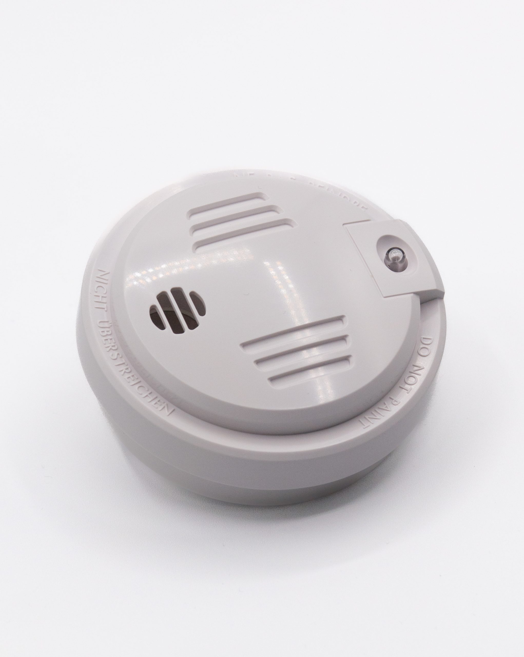 Detector de sensor óptico de humo particularmente efectivo para los fuegos lentos sin llama, produce indicación sonora superior a 85dB a 3 metros.